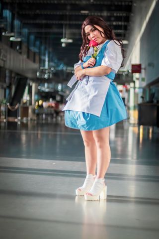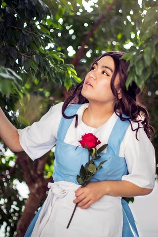 I made a dress inspired by Beauty and the Beast that transform from her regular dress and into my own designed "ball dress". It has flowers made of foam and pearls on the inside.